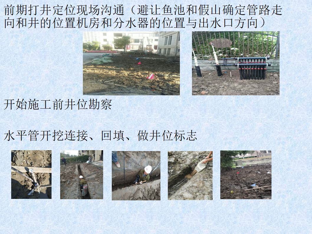 6.3.5水平管道回填:首先調(diào)整水平管的間距、平整度。施工 時水平管下墊沙層,連接完畢后上部用原土回填并進行夯實。